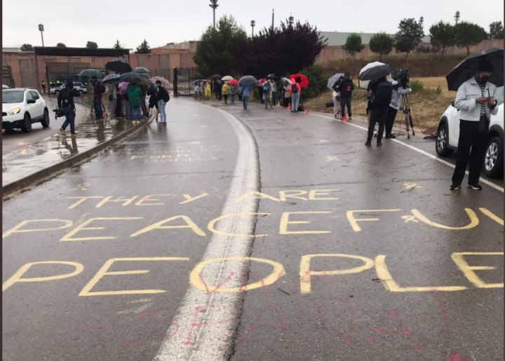 En las puertas de Lledoners se concentran decenas de periodistas y está previsto, según fuentes idependentistas, que después de salir y ser recibidos por Aragones, los presos hagan declaraciones en una plataforma instalada a unos metros de la salida.