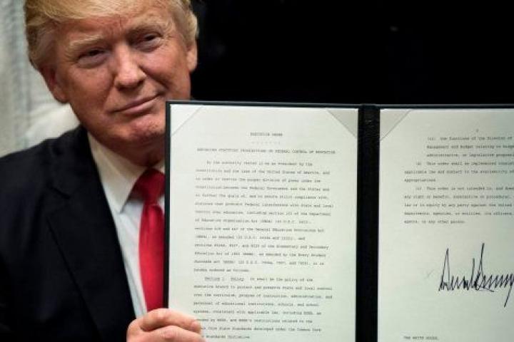 Entre los logros de sus primeros 100 días de gobierno destacan la nominación exitosa del juez federal Neil Gorsuch para ocupar una plaza en la Suprema Corte o la retirada inmediata del Acuerdo Transpacífico (TPP), negociado por su predecesor Barack Obama y del que se sacó a EEUU su primer día en el poder. Más allá de esto lo que ha habido es mucho titular, pero pocos resultados. Sus otras victorias han sido menores. De hecho, esos escasos avances en la puesta en práctica de su programa sólo los ha logrado a golpe de decreto —aunque ha llegado a plantar un acto en el que tenía que firmarlos—: ha endurecido la lucha contra los 'sin papeles', ha eliminado los planes para imponer regulaciones en las térmicas de carbón, ha reducido las regulaciones medioambientales y laborales, y ha aprobado la construcción de dos oleoductos. Nada más.