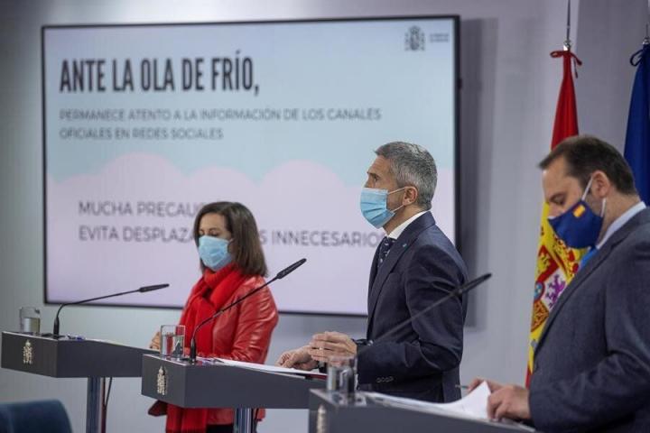 Marlaska ha comparecido en rueda de prensa junto a los ministros de Transportes, José Luis Ábalos, y de Defensa, Margarita Robles, tras la reunión telemática del Comité Estatal de Coordinación y Dirección del sistema nacional de Protección Civil, que ha evaluado los efectos del temporal y que ha presidido el jefe del Ejecutivo, Pedro Sánchez, desde la sede de la Dirección General de Protección Civil.