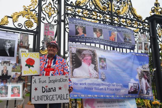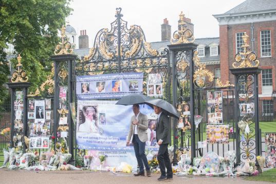 Mientras los medios del país emitían programas y especiales sobre la todavía muy popular princesa de Gales, sus hijos visitaron bajo la lluvia torrencial el jardín blanco efímero creado en su memoria en el palacio de Kensington, donde residía Diana. En el jardín predominan las flores de tonos blancos, con algún toque de color, y fueron especialmente plantadas este año para rendir homenaje a la princesa. El White Garden es el cuarto espacio oficial en Londres en honor a la princesa, junto con el Diana Memorial Playground —un parque infantil en los jardines de Kensington—, la fuente Diana Memorial Fountain, en el cercano Hyde Park, y el paseo Diana Memorial Walk, que cruza desde el palacio de Buckingham hasta el de Kensington.