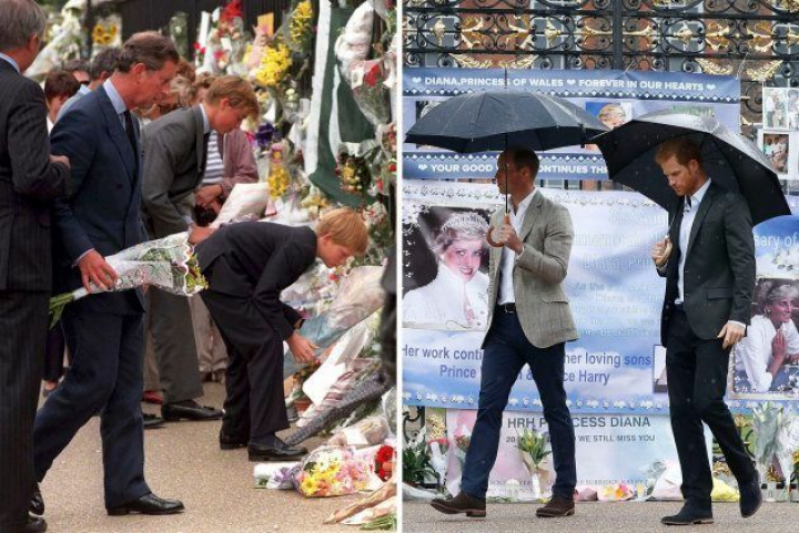 Delante de las vallas del palacio londinense, ramos, mensajes y fotos comenzaron a acumularse desde el martes, veinte años después del mar de flores depositado en el mismo lugar por millones de personas desconsoladas. Entonces, Guillermo y Enrique también visitaron el lugar tras la muerte de su madre acompañados por su padre, el príncipe Carlos. Una imagen icónica que se ha repetido ahora, 20 años después.