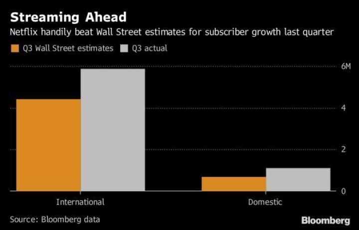 La empresa californiana también ha sorprendido a los analistas al informar sobre la cifra de suscriptores, tras la decepción que supuso el trimestre pasado. La compañía ha logrado añadir 6,96 millones de nuevos usuarios entre julio y septiembre, de los cuales 1,09 millones se encuentran en Estados Unidos.