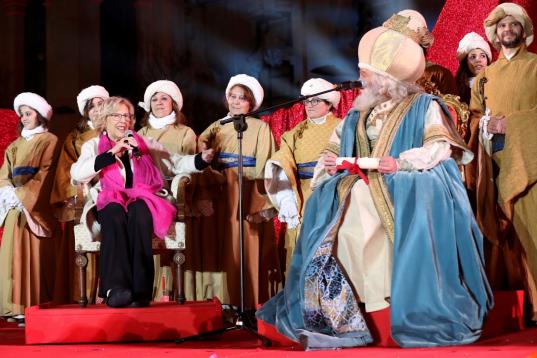 En su discurso de bienvenida, la regidora madrileña ha pedido a los Reyes que no se olviden de ningún niño esta noche porque desde el Ayuntamiento han "cambiado calles".