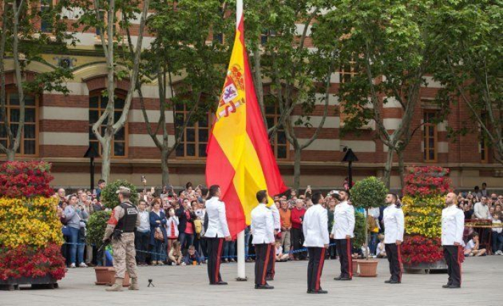 A continuación se desarrolla el desfile aéreo, en el que participarán aviones cazas F-18 y Eurofighter, así como nuevo avión de transporte A400M.