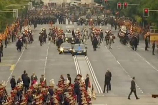 Una vez finalizada la parte motorizada ha llegado el turno de las banderas de las unidades y las seis banderas históricas de España que conmemoran el 175 aniversario de la 'rojigualda', pertenecientes a los reinados de Felipe IV, Carlos III, Carlos IV, Isabel II, Alfonso XII y Juan Carlos I.