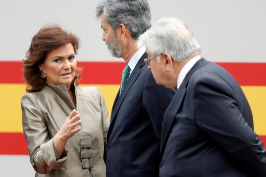 Este acto central del Día de la Fiesta Nacional ha reunido a una amplia representación de las autoridades del Estado y partidos políticos. Encabezado por Pedro Sánchez, ha estado el Gobierno al completo con la única ausencia del ministro de Fomento, José Luis Ábalos.