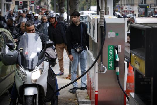 PARIS, FRANCE - OCTOBER 12 : Queues are formed at petrol stations as some petrol pumps have been running dry in France because of a strike from energy workers deliveries on October 12, 2022 in Paris, France. (Photo by Geoffroy Van der Hasselt/A...