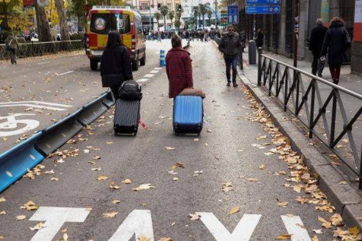 Una pareja camina en el carril bus durante la huelga de los taxis en noviembre de 2017.Sergio Perez / Reuters