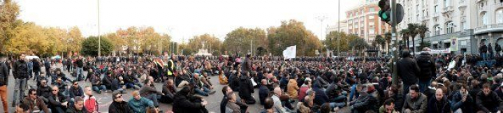 La manifestación estaba notificada y autorizada hasta las 15 horas. En ese momento, los antidisturbios que defendían la valla que separaba la manifestación de la calle que da acceso al Congreso, han comenzado a notificar a los manifestantes que tenían que marcharse. Sin embargo, alrededor de un centenar de taxistas se han sentado al término de la manifestación en la Plaza de Cánovas del Castillo, conocida popularmente como Neptuno, al grito de "no nos moverán".