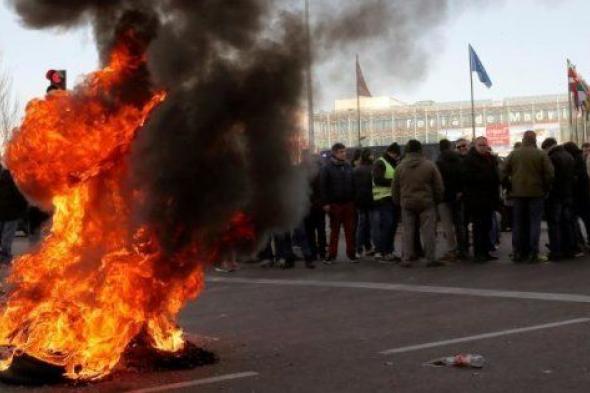 Desde las 6.00 horas del lunes, la Feria de Madrid (Ifema) es el punto central de las protestas de los taxistas, muchos de los cuales han pasado allí todas las noches desde que comenzó la huelga.