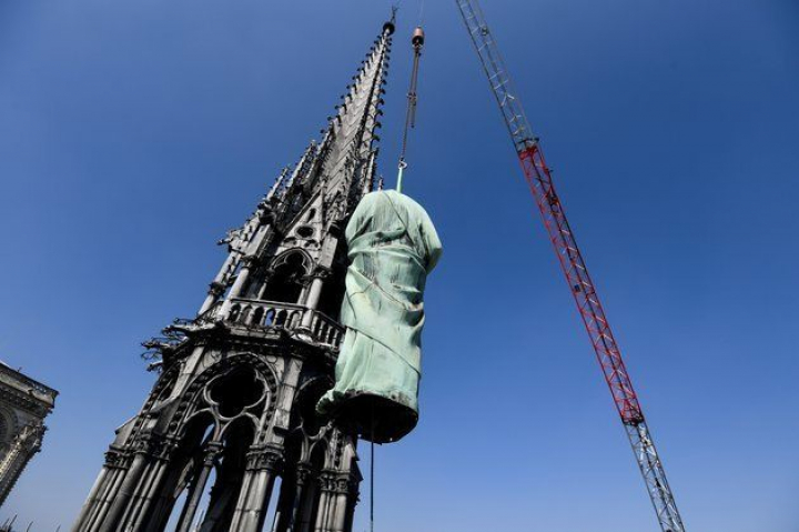 - La campana. La más grande de Notre Dame, llamada Bourdon, también continúa en su sitio (en la torre sur) pero a la espera del análisis de los expertos. Se fundió hace más de 300 años y fue bautizada Emmanuel por su padrino Louis XIV. Su peso es de 13 toneladas y el obturador, la parte que golpea contra las paredes para producir el sonido, es de 500 kilos.