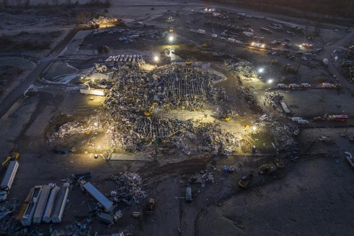 En la nave industrial había unas 110 personas trabajando cuando llegó el tornado que arrasó totalmente la planta. Unas 40 personas han sido rescatadas, pero podría no haber más rescates con vida, según han reconocido las autoridades.