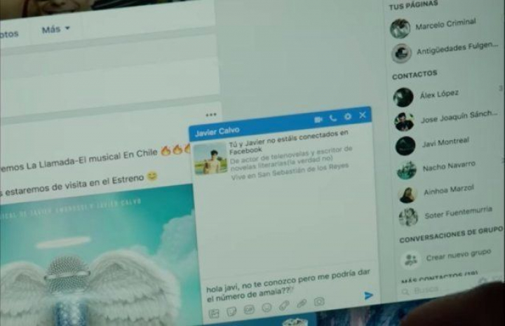 En su intento fallido porque los integrantes de la banda le respondan sus mensajes, decide ponerse en contacto con Amaia. Al ver que no le contesta a sus mensajes directos de Instagram, se pone en contacto vía Facebook con Javier Calvo, profesor de la Academia de OT y amigo de la pamplonica tras el programa.
