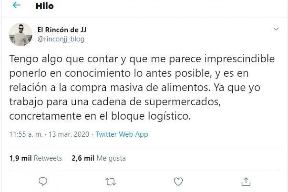 Ante la situación, el usuario de Twitter @rinconjj_blog, que trabaja en el bloque logístico de una cadena de supermercados, ha publicado una serie de consejos a la hora de ir a comprar.