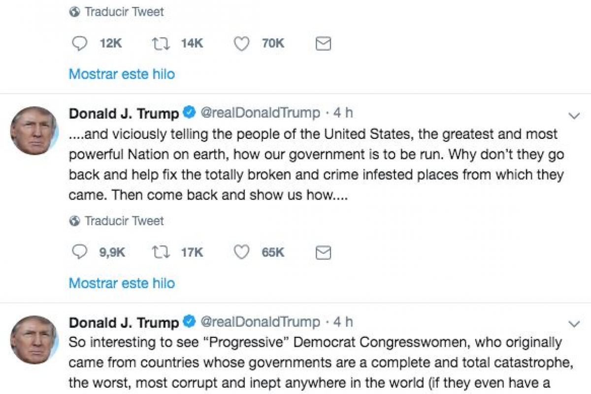Donald Trump siendo racista en tres tuits.TWITTER: DONALD TRUMP