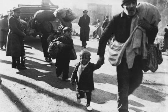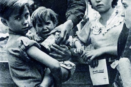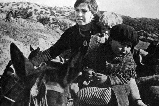 Tres niños huyen de Málaga durante la Guerra Civil Española.