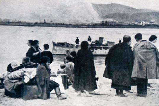 Civiles españoles esperan a un barco que les llevará a Francia en su huida durante la Guerra Civil Española.