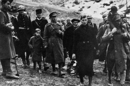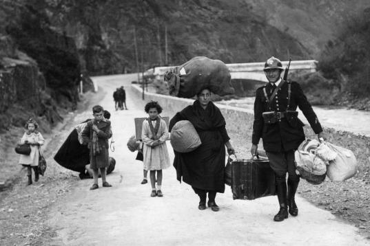 Varios refugiados cruzan los Pirineos huyendo de la Guerra Civil.