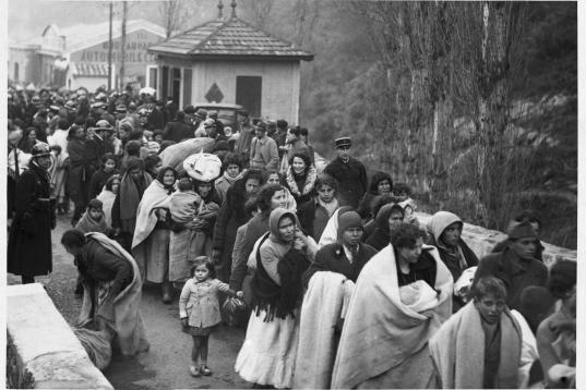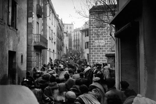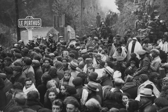 Una multitud de refugiados en Francia, al norte de la frontera con España en febrero de 1936. Pronto serían mandados a distintos campos de refugiados por las autoridades francesas.