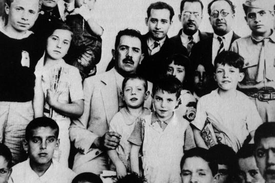 Niños españoles refugiados son recibidos por el presidente Cárdenas, de México, durante la Guerra Civil.