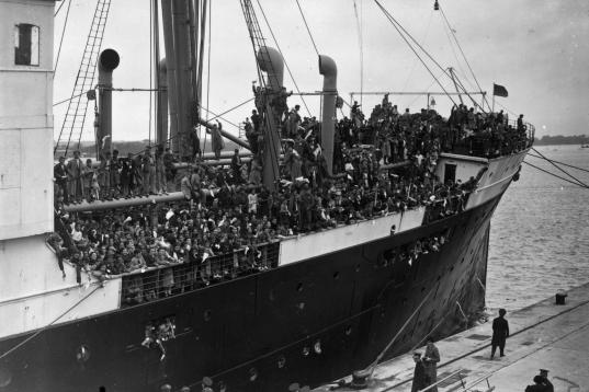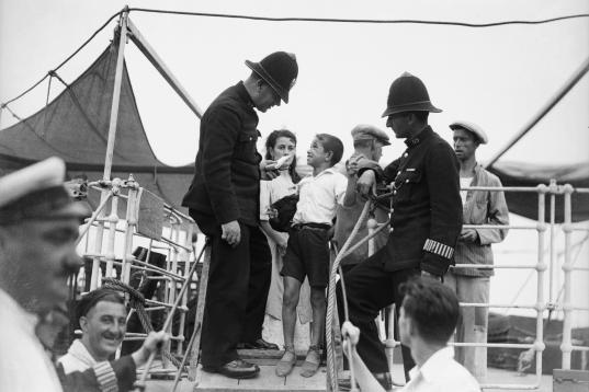 Varios niños son evacuados en barco desde Santander durante la Guerra Civil Española en 1937.