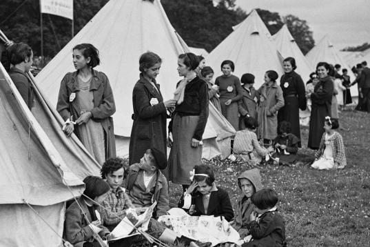 Nuevas llegadas a un campo de refugiados de españoles durante la Guerra Civil.