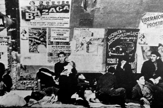 Varios refugiados en el Metro de Madrid en Gran Vía, huyendo de las bombas durante la Guerra Civil.