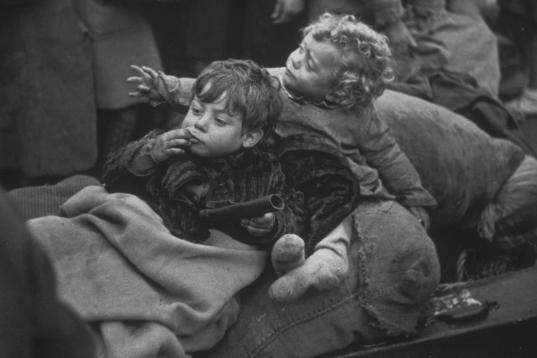 Unos niños españoles se preparan para dejar España durante la Guerra Civil, en 1938.