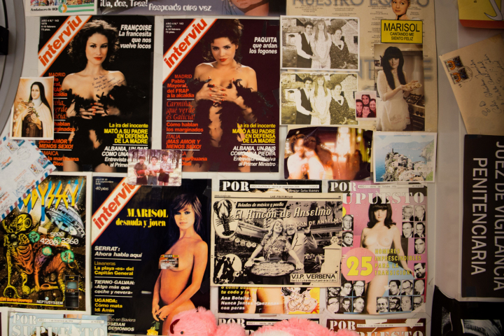 De vuelta a la oficina de arte, todo son recuerdos de temporadas pasadas o de quienes inspiraron la ambientación del universo Alcántara, así como la construcción de sus personajes. Fotos de bodas antiguas, fotos de orlas de 1930, incluso esa portada de Telva en la que Mercedes (Ana Duato) era, en un primerísimo primer plano, la Mujer ideal 1971. De aquí salen hasta los logos de los bares de la serie, como el del Fly. Ellos son los responsables de que todo encaje bien con la época.