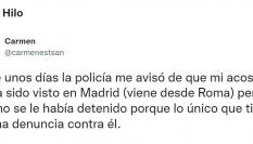 Aunque esta situación no encajaría como delito de acoso, según han confirmado a Radio Madrid fuentes jurídica, sí es acoso para la mujer que lo vive. Desde las asociaciones feministas de Madrid lo tienen claro. “Esto parte de la raíz de la violencia que sufrimos las mujeres. Si no estuvieramos en una sociedad patriarcal, en la que cualquier situación se puede tornar violenta para nosotras, quizá la mujer no se sentiría en peligro. Pero este año en España ha habido 88 feminicidios”, ha explicado Marina Cortijo, presidenta de Empoderadas, asociación que forma parte de la Federación de Mujeres Jóvenes.
