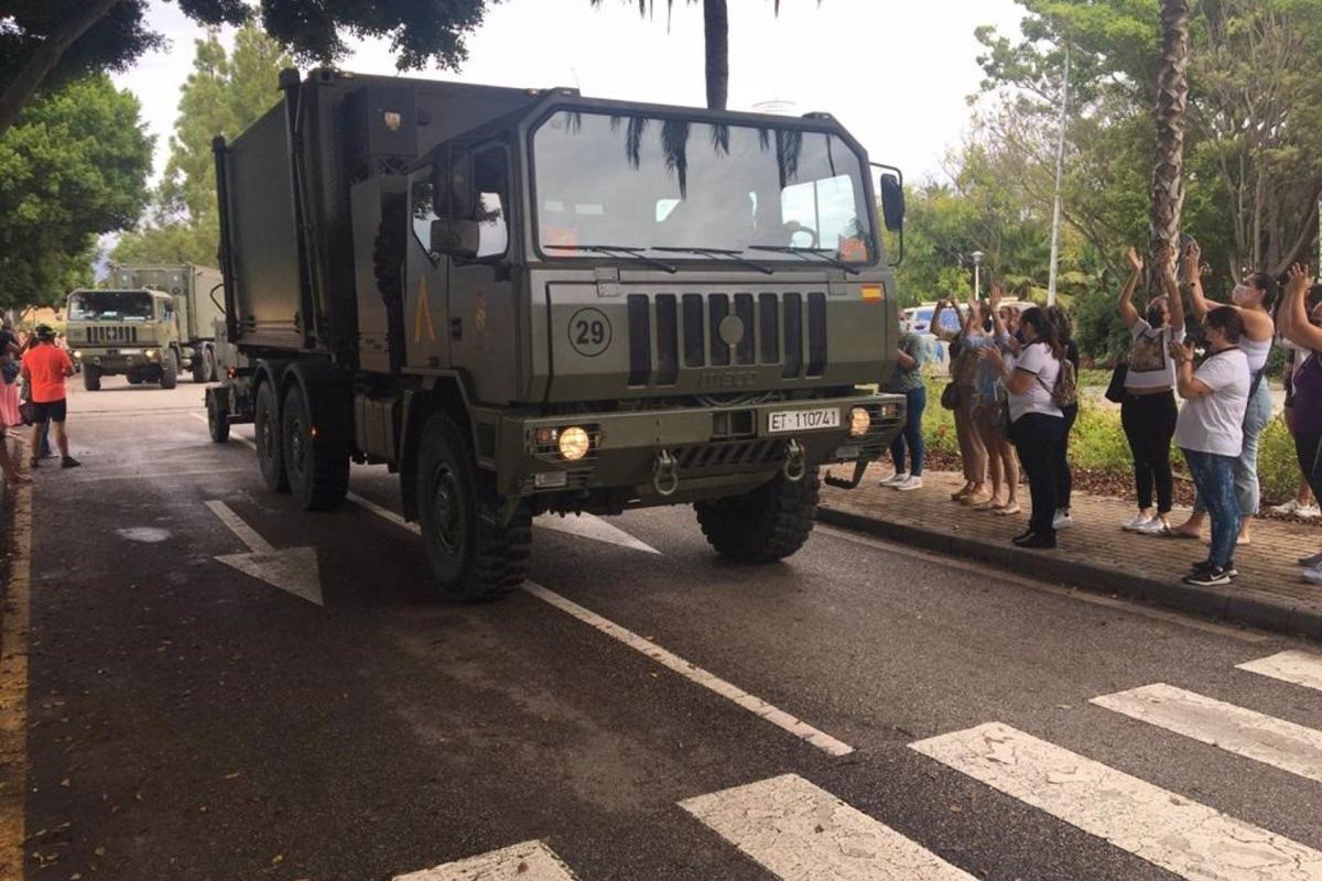 Los vecinos de Estepona despiden con aplausos a los efectivos que han apoyado a controlar el incendio