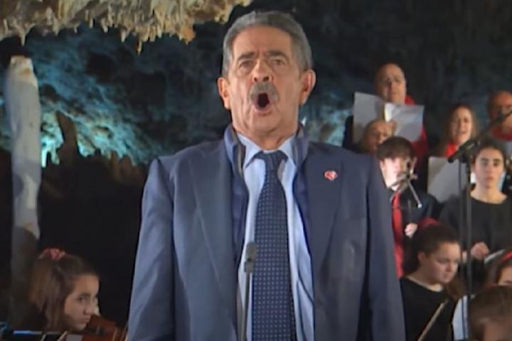 Cuando a Revilla le das un micrófono es seguro que no se va a quedar callado. Se le ha visto hablar de todo y de todos, pero hubo un año que se vino (más) arriba y se arrancó a cantar un villancico para rematar su discurso institucional por la Navidad de 2019. Por supuesto, tira de producto cántabro para sorprender a su público, ya que interpreta una obra del compositor local Nobel Sámano.