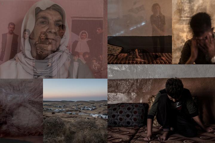 Un hombre yazidí de 24 años, en su tienda de campaña en el monte Sinyar el pasado mes de septiembre. “Somos del sur de la montaña, cerca de la ciudad de Sinyar. Después del genocidio, nos quedamos un año en un campo de desplazados internos en Kurdistán, luego vinimos aquí, a la montaña. Vivo en esta tienda de campaña con mi familia, mis padres, mi esposa, mi hermano, mis sobrinos... Es muy, muy difícil vivir aquí. Las condiciones de vida son muy duras. Siempre hace demasiado calor o demasiado frío. Tenemos que hacer nuestras necesidades en unas letrinas compartidas que están asquerosas. No hay trabajo aquí, así que me uní a un grupo armado y de este modo logro juntar unos 300 dólares al mes. No soy feliz. Siempre hay alguna cosa que me impide serlo. No salgo con mis amigos porque no quiero ni puedo fingir que estoy bien. La depresión es muy difícil. Siento como si me estuviera derritiendo, y de hecho he perdido mucho peso. Las consecuencias afectan a todo mi cuerpo. También me olvido de muchas cosas. Siempre tengo en mente las cosas que vi y que oí sobre el genocidio. Niños muertos. El ISIS los asesinaba, luego ponían sus cuerpos al fuego y obligaban a sus madres a comerse su carne. He tratado de suicidarme tres veces: ahorcándome, con una pistola y un cuchillo. Las tres ocasiones apareció alguien que logró detenerme. Desde entonces, mi familia está preocupada por mí y eso hace que yo me sienta muy culpable. Sé que, lejos de ayudar, mi actitud simplemente empeora las cosas. No quiero tomar medicamentos porque provocan demasiados efectos secundarios. Me gustaría poder tomar una píldora mágica que hiciera desaparecer todo lo que sucedió”.