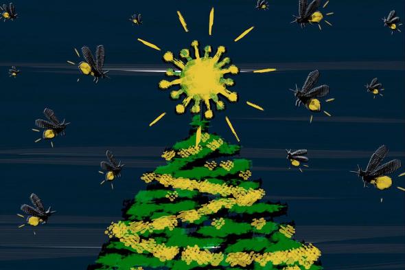 El sistema invita a ir hacia la luz hipnotizadora del mercado. Miles de luciérnagas kamikaze se aproximan al árbol de navidad cortado de un bosque infectado. Las autoridades lo han colocado en medio de la plaza para que acudan todos. Se encienden las luces. Cruce de pandemias.