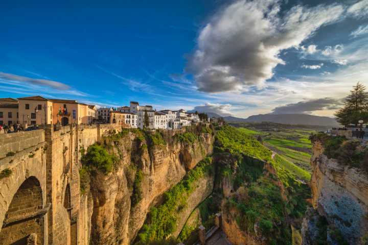 Lo más reconocible de este pueblo es su imponente puente situado a más de 100 metros de altura y que habréis visto más de una vez en fotos. Su nombre es Puente Nuevo y recorrerlo es obligatorio cuando se visita Ronda. Aquí podrás hacerte las mejores fotos con tu pareja e inmortalizar la visita a este pueblo malagueño.