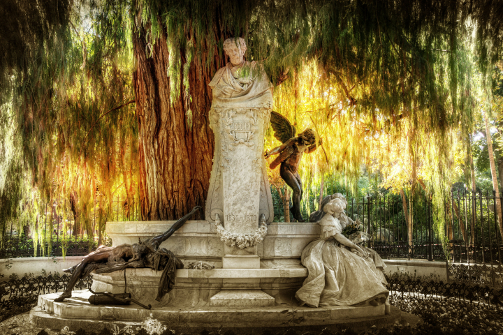 Pero como de amor va la cosa, no podéis dejar de visitar el monumento a Becquer, localizado en el bonito parque Maria Luisa. Un conjunto escultórico dedicado al máximo expresionista de la poesía romántica, Gustavo Adolfo Bécquer. Está formado por un busto del poeta y otras tres que representan a tres mujeres y los estados del amor: amor ilusionado, amor poseído y amor perdido. Un rincón perfecto para enamorar.