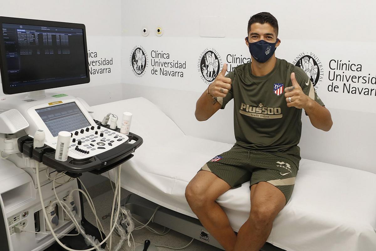 El futbolista uruguayo, que ha militado como delantero en los últimos seis años en el Barcelona, pasó reconocimiento médico con el club previo a la firma de su contrato y se fotografió con la camiseta de entrenamiento del equipo y con la mascarilla con el escudo rojiblanco.