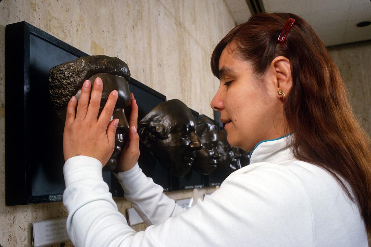 Una mujer invidente, en una exposición en Nueva York. Getty Images