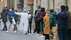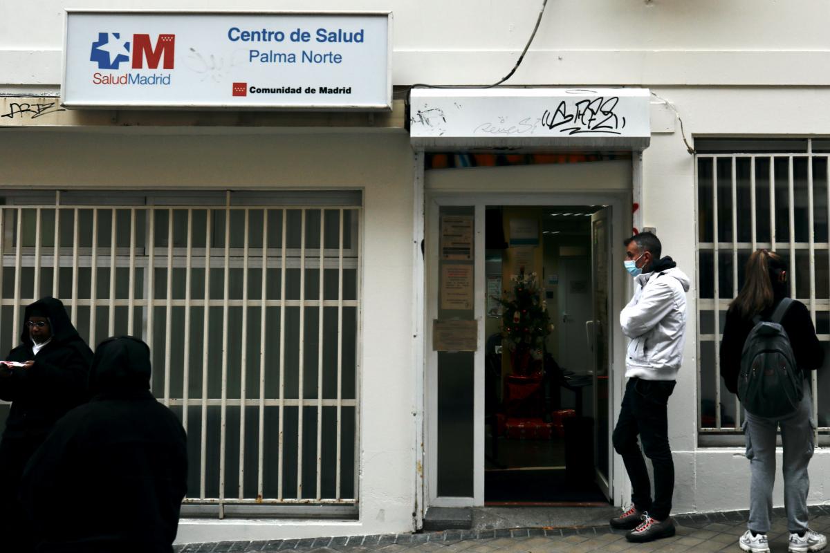 Varios pacientes esperan frente a la puerta de un centro de salud de Madrid, el 21 de diciembre.Cezaro De Luca/Europa Press via Getty Images