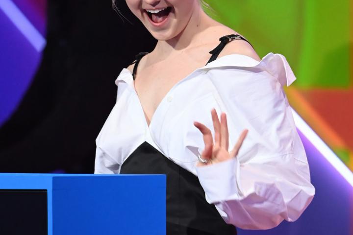 Maisie Williams, Arya Stark en Juego de Tronos —una de las series más exitosas de los últimos tiempos—, fue la encargada de presentar el premio. La actriz llamó la atención por su evidente cambio de look: los seguidores de la serie están acostumbrados a verla con el pelo castaño y a los BRIT acudió teñida de rubio platino.