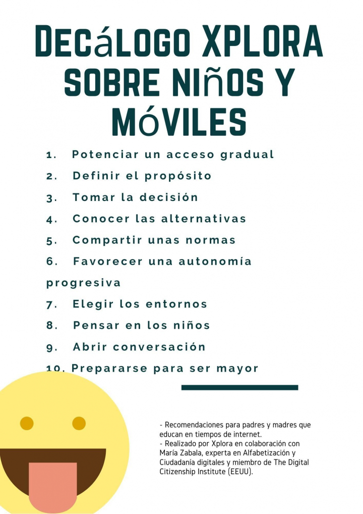 “No existe una edad ideal porque no todos los niños son iguales, porque no son iguales ni en el contexto de una familia con varios hermanos, ni todas las familias somos iguales… Ni en general, ni en nuestra relación con la tecnología”, afirma María Zabala, experta en Alfabetización y Ciudadanía digitales y miembro de The Digital Citizenship Institute (EEUU), con quien ha elaborado el I Decálogo XPLORA sobre niños y móviles.
