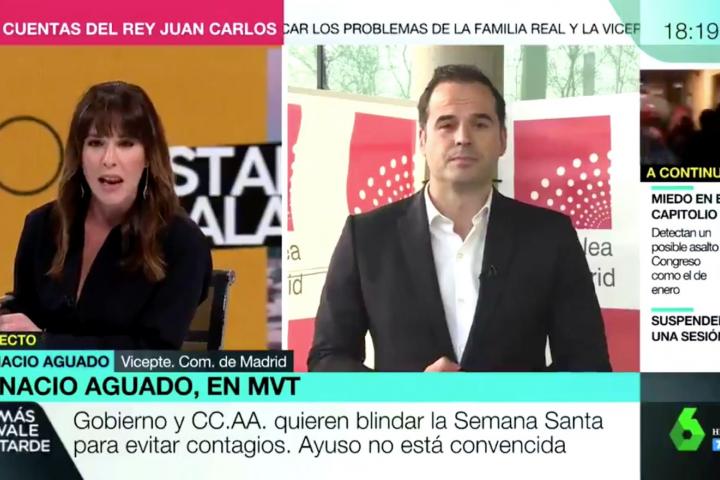 Ignacio Aguado, vicepresidente de la Comunidad de Madrid, ha sido entrevistado este jueves por Mamen Mendizábal, presentadora del programa Más Vale Tarde de LaSexta, donde el dirigente madrileño ha pasado un mal rato por las preguntas de la periodista.