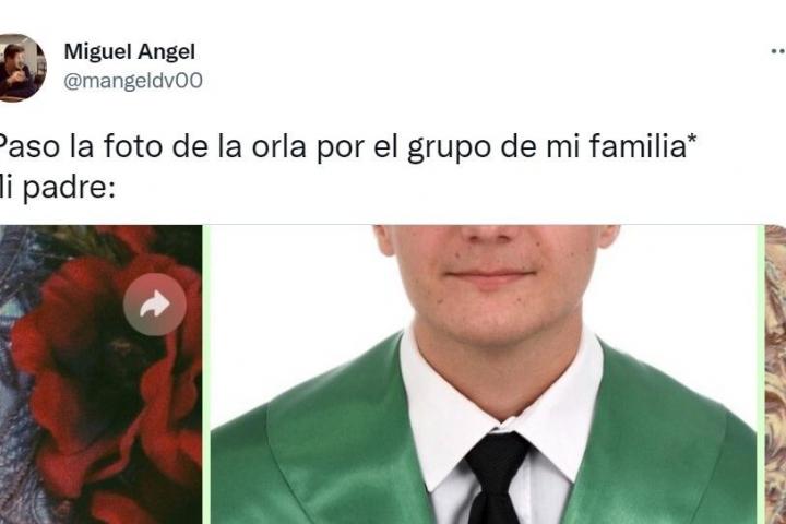 Manda por el grupo familiar su foto de la orla y la respuesta de su padre es para enmarcar