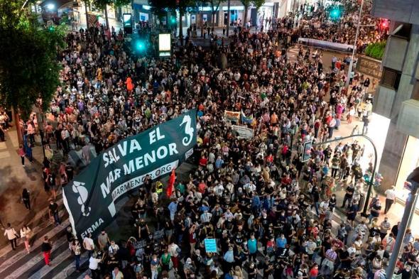 “Y hoy estamos aquí, de nuevo miles de personas exigiendo soluciones reales, porque el Mar Menor, y millones de peces y otros animales se arrojaron en el mes de agosto de este año a las orillas para pedirnos desesperadamente que actuásemos ya”, ha recalcado Rubio antes de pedir al Ministerio para la Transición Ecológica y el Reto Demográfico (Miteco) que, en caso necesario, asuma las competencias autonómicas de medio ambiente.