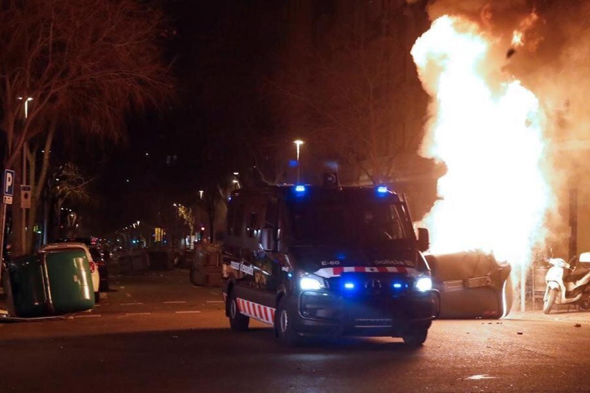 Queman contenedores en una manifestación en Barcelona en apoyo a Pablo Hasél