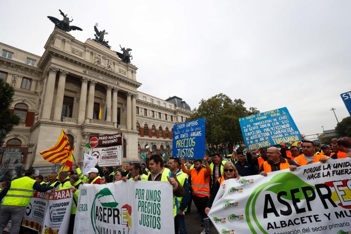 Y las amenazas se cumplieron. La Plataforma para la Defensa del Sector de Transporte de Mercancías por Carretera Nacional e Internacional ha salido a la calle este lunes para realizar una manifestación en Madrid. La protesta ha coincidido el paro indefinido que ha arrancado en la medianoche del domingo y que convocaron para reclamar que se haga cumplir la ley que prohíbe su trabajo por debajo de costes, así como otra serie de mejoras de sus condiciones laborales, en un contexto con el precio de los carburantes disparado.