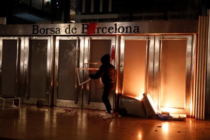 Después han comenzado los primeros disturbios, con incendios en varios puntos de la ciudad, como en la entrada de la Borsa de Barcelona, que ha sido provocado por varios manifestantes. También se han roto los escaparates de varias tiendas del Paseo de Gracia.