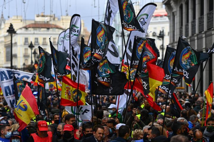 Una multitud se ha manifestado este sábado en Madrid convocados por el sindicato policial Jusapol contra la reforma de la llamada Ley Mordaza que prepara el Gobierno.