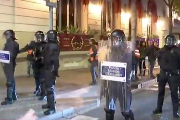 Así, a pocas calles de la plaza Urquinaona, cerca del monumento a Rafael Casanova, encapuchados han tirado contenedores en la calzada y han lanzado objetos a mossos y a periodistas.