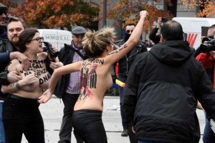 Manifestantes franquistas intentan agredir a tres activistas de FEMEN que protestaron contra la marcha